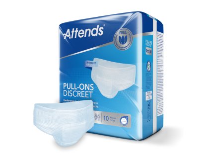 Jednorázové navlékací kalhotky Attends jsou diskrétním a pohodlným řešením při nechtěném úniku moči. Tyto absorpční kalhotky jsou k dispozici v produktových řadách Discreet